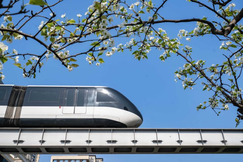 《开往春天的“云巴”》2025年3月27日,摄于重庆市璧山区。