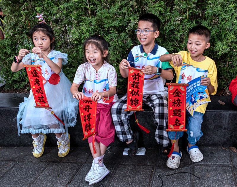 《为哥哥姐姐加油》。2025年6月7日,摄于重庆市沙坪坝区。