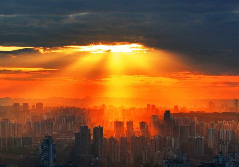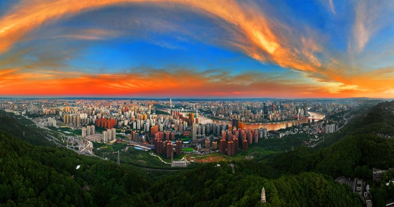 《夕阳红云映城来》2025年6月28日,摄于重庆市沙坪坝区。