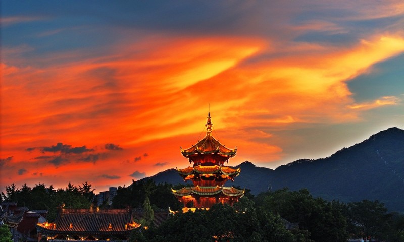 《夏日晚霞红似火》2025年8月14日,摄于重庆磁器口景区。