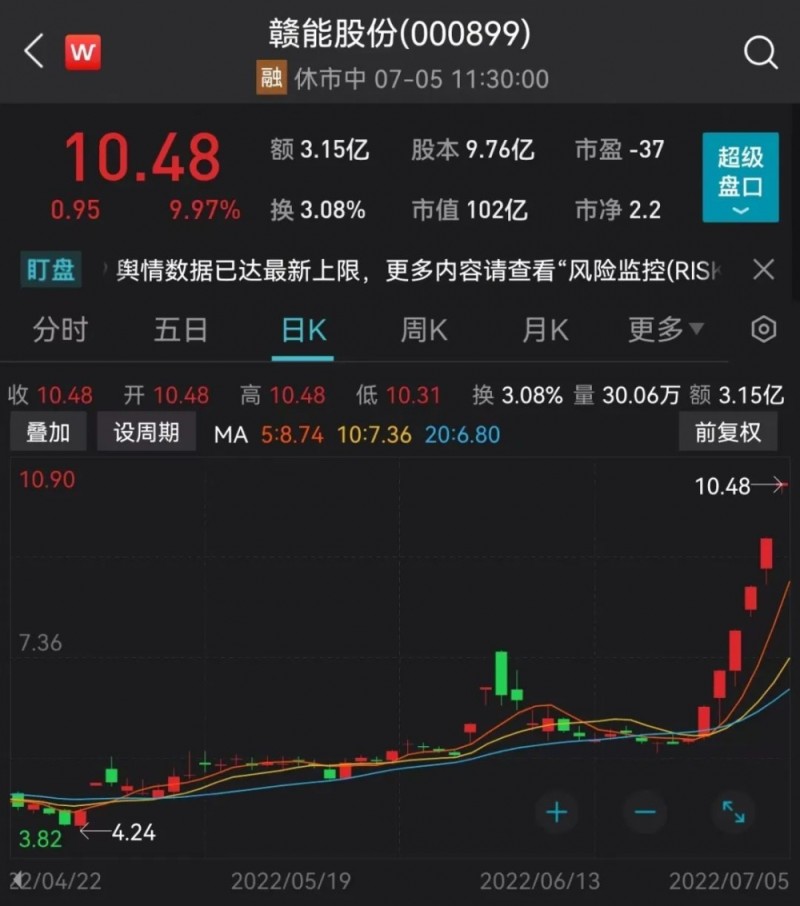 电力股再度活跃,赣能股份6连板。消息面上,昨日,赣能股份公告,今年1-6月,公司上网电量31.24亿千瓦时,较上年同期减少13.8%,其中市场化交易电量28.91亿千瓦时,占上网电量的92.54%,较上年同期增长29.12%。