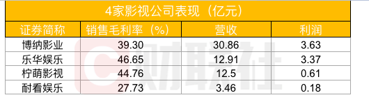 根据四家即将IPO影视行业公司的2021年的财务表现看,主营电影制作的博纳影业营收与利润排名第一,而主营艺人经纪的乐华娱乐毛利率最高。