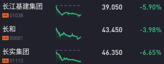 长实集团今年走势相对稳健,6月还创下年内新高,但随着国际形势急转直下,近三天大跌12%,股价直接跌回今年3月水平。走势更为疲弱的长和及长江基建集团大跌,续创出年内新低。