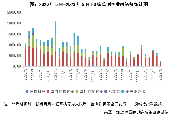 克而瑞统计显示,5月80家典型房企的融资总量为263.29亿元,环比减少56.4%,同比减少60.4%,创下了2020年以来单月融资的新低。其中,房企债券发行了178.46亿元,环比减少49.3%,同比减少59.8%。而发债企业仍以招商蛇口、金融街、保利等国企央企为主。[2]