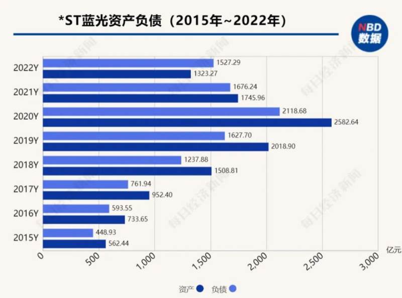 与此同时,蓝光发展的债务状况仍在持续恶化。2022年,蓝光发展的合同销售金额不足50亿元;归属上市公司股东净利润为-249.41亿元;总资产约1323亿元,同比减少24.21%;净资产约-238.69亿元,同比减少1858.96%。截至今年5月15日,蓝光发展累计到期未偿还债务本息合计425.56亿元。