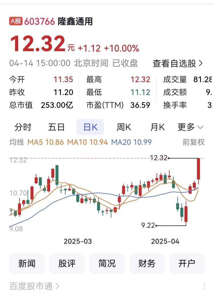 隆鑫通用报收12.32元,日涨幅10.00%(涨停),换手率3.96%,今年以来的涨幅35.38%。