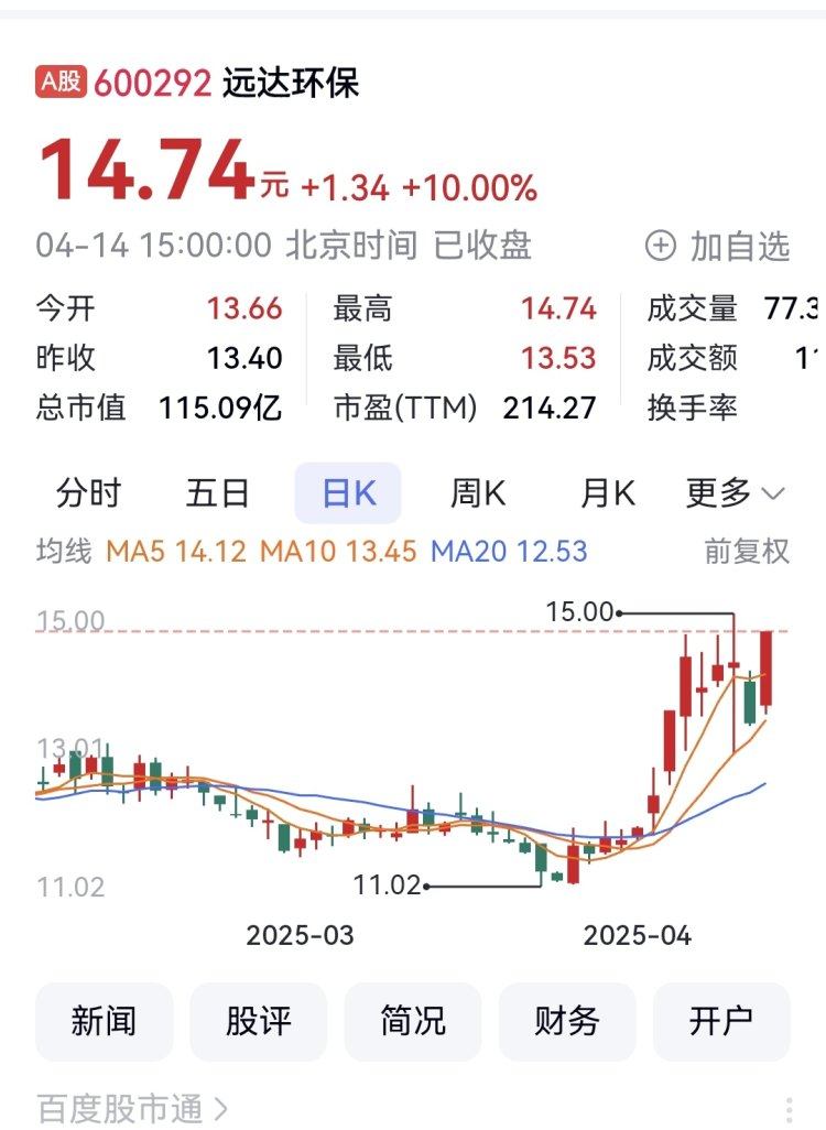 远达环保报收14.74元,日涨幅10.00%(涨停),换手率9.90%,今年以来的涨幅13.47%。