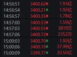 尾盘最后3分钟,场内仍有资金尝试拉动沪指上攻,却最终收于3399.77。