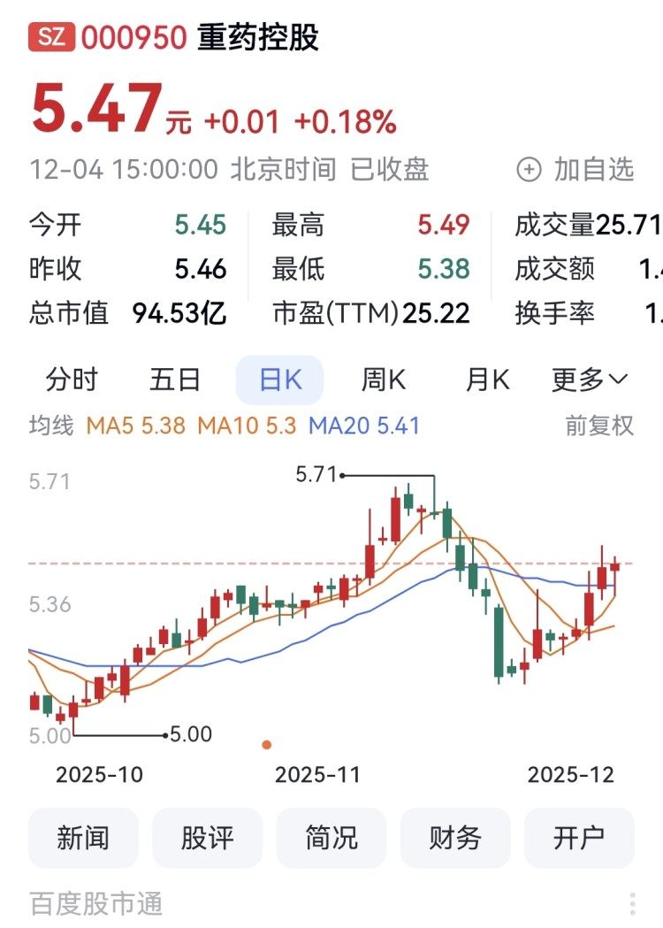 12月4日晚间,央企通用旗下重药控股(000950)披露2025年前三季度利润分配预案,拟以9月30日享有利润分配权的股本总数约17.13亿股(总股本17.28亿股扣除公司回购专户中持有的股份1540.66万股)为基数,向全体股东每10股派发0.30元现金红利(含税),分配总金额为5138.33万元(含税)。