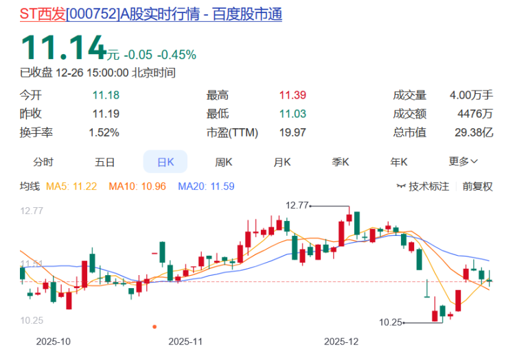 消息面上,ST西发于2025年12月24日收到拉萨中院决定书,决定对公司预重整延期1个月,从2025年12月26日延长至2026年1月25日。